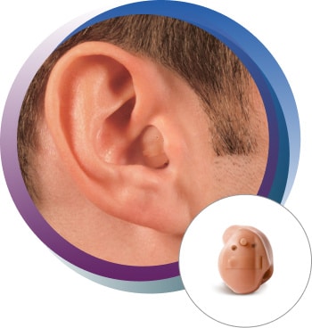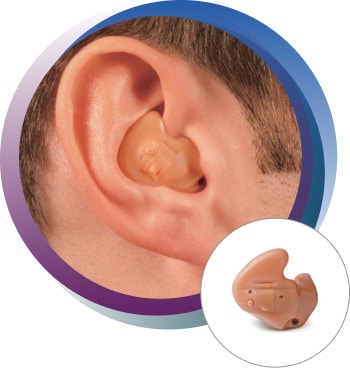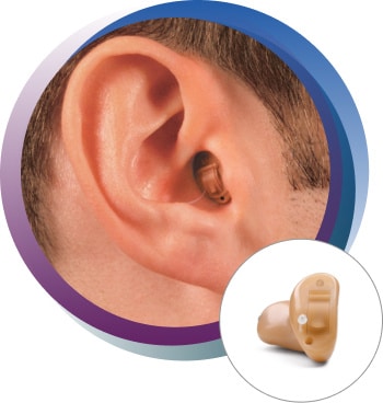 This hearing aid is placed in the ear canal and is the smallest available. It takes advantage of the ear’s natural ability to collect sound, and its discreet size makes the device virtually invisible to others.
